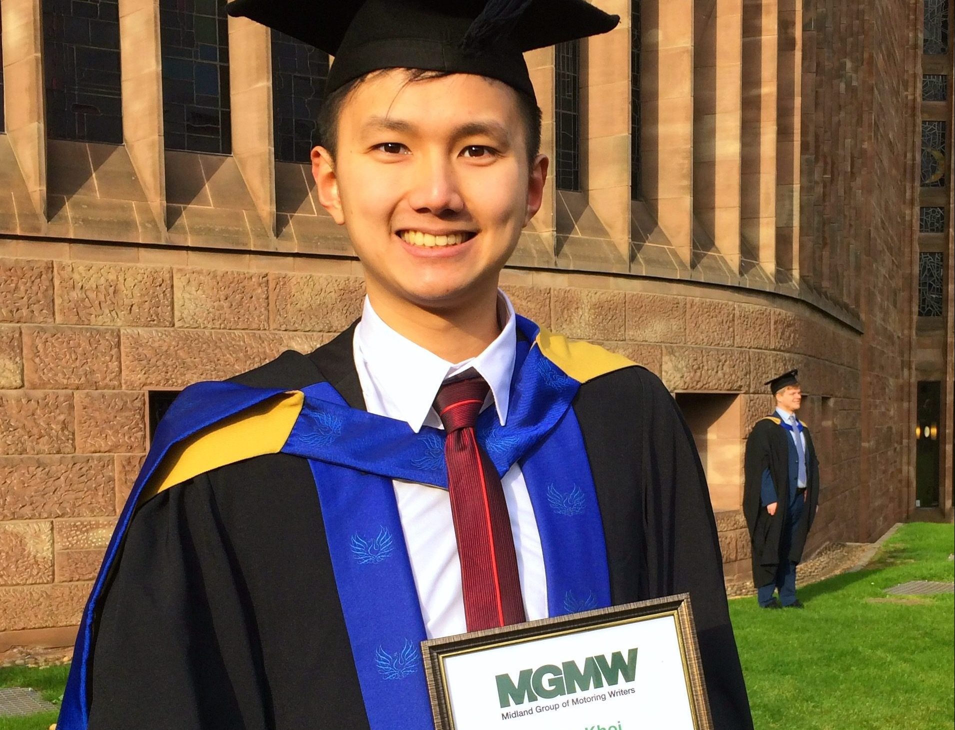 The prize is awarded annually for the student on the university's Automotive Journalism MA degree course who produces the best final project. Khoi - seen here receiving his prize certificate at his graduation ceremony in November - made an investigation into the characteristics of Youtube car reviews which was judged to be the best of the 2017-18 projects.